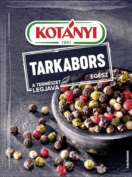 egész tarka bors  Összetevők: Bors (fekete, fehér, zöld), Rózsabors Allergének: Nyomokban gluténtartalmú gabonaféléket, tojást, tejet (laktóz), zellert, szóját, mustárt és szezámmagot tartalmazhat.