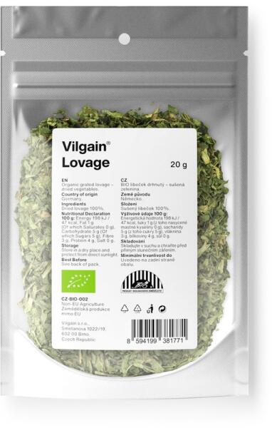 A Vilgain Szárított lestyán BIO kellemesen aromás fűszer, kesernyés, fűszeres ízzel. Nem tartalmaz tartósítószert, ízfokozót vagy mesterséges aromát, és biogazdálkodásból származik.